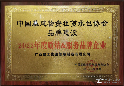 廣西建工集團(tuán)智慧制造有限公司榮獲“2022年度質(zhì)量服務(wù)品牌企業(yè)”,公司董事長、黨總支書記李日紅榮獲“2022 年全國基建物資租賃承包行業(yè)杰出創(chuàng)新人才”稱號(hào)。